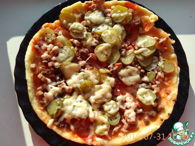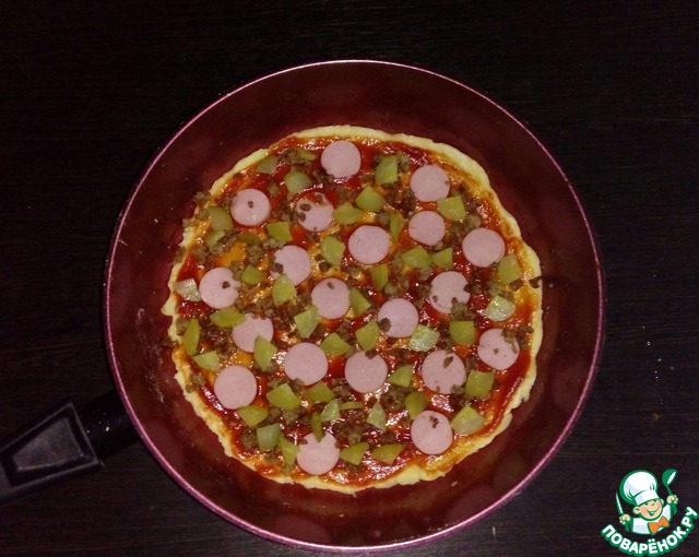 Не люблю пиццу с заливным тестом. Она получается на вкус как омлет. И кетчуп по ней не размажешь. И в то же время хочется сделать пиццу, потратив немного времени. Пока мои двойняшки спят, я успела сделать все))) Прелагаю вариант пиццы на сковороде с простой основной.