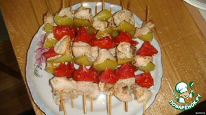 Насадить на шпажку куски мяса и овощи, чередуя их между собой.