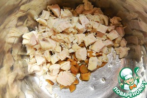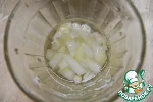 Лук нарезать кубиками и замариновать в уксусной воде (100мл воды + 1ст. л. уксуса).