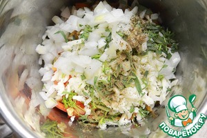 Сыр натереть на терке, тархун порезать мелко. Добавить к общим ингредиентам.