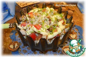 Аппетитный, сытный и вкусный салатик. Изюминками данного салата являются гречневые оладьи и тархун.