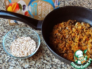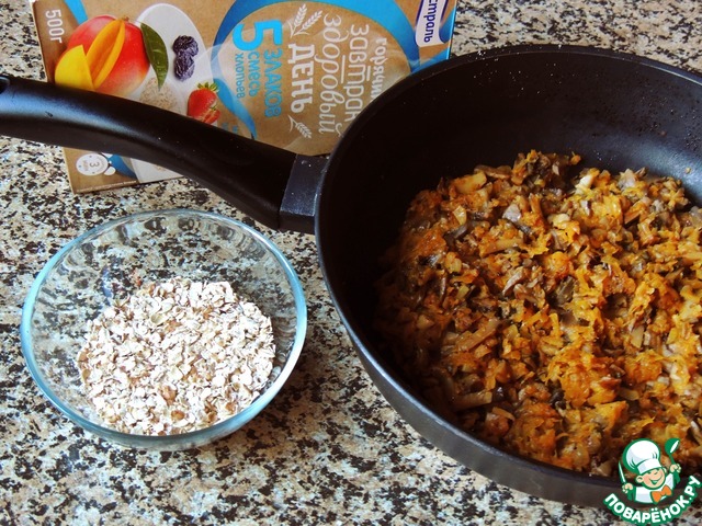В овощную смесь всыпать злаковые хлопья, влить стакан кипятка, дать настояться пару минут.