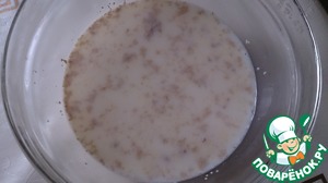 В теплое молоко добавить дрожжи и сахар. Оставить на пару минут, дать подойти.
