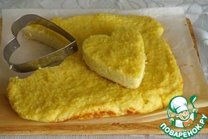 Из коржа вырезать любые фигурки или просто разрезать его на квадраты.