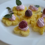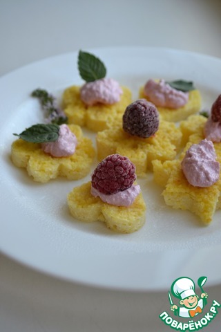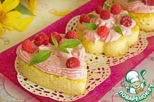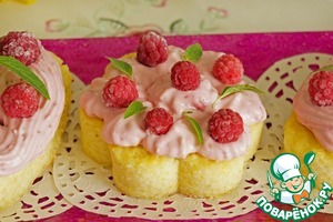 Крем: 200 г творога 9 процентной жирности, 50 г размороженной малины и 1 ст.л. термостатного натурального йогурта.
