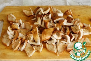 Грибы преребрать, промыть под проточной водой, нарезать не очень мелко.
