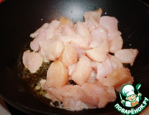 Отправить в сковороду и, помешивая, обжаривать примерно минут 5.