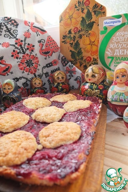 Смазываем пласт клюквой.