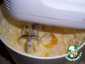 Добавить желток и взбивать минуты 2, влить экстракт, всыпать муку, шоколад и замесить тесто.