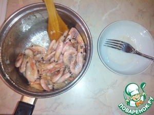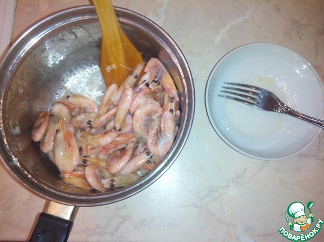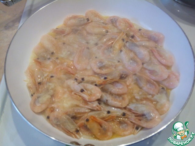- Креветки (берем дешевые креветки, обязательно во льду.) — 500 г
