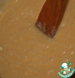 В готовый и слегка остуженный рис вылить дрожжи и перемешать, дать немного постоять.