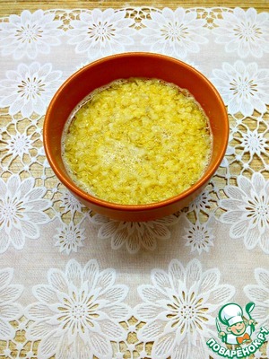 Отмерим хлопья в мисочку, зальем 130 мл горячей воды, хорошо перемешаем, через пару минут добавляем в кашу сливочное масло.
