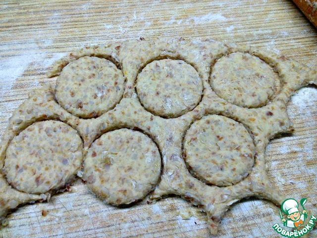 • Формируем небольшие лепешки и делаем решетку ножом, ну или просто накалываем вилкой. Если не накалывать, они поднимутся и будут, как булочки.