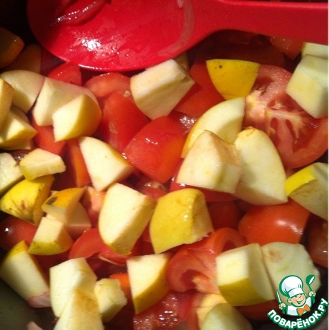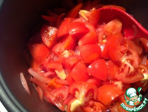 Через 30 мин. добавить порезанные помидоры