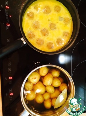 Тушу наши нежные тефтели 10 минут, и вот молодой картофель тоже почти готов.