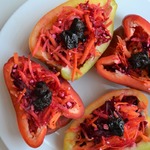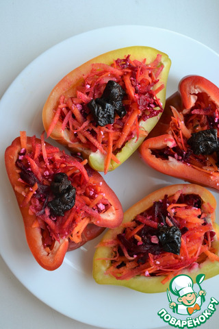 Все, кроме перца, перемешать с творогом и наполнить половинки перцев.