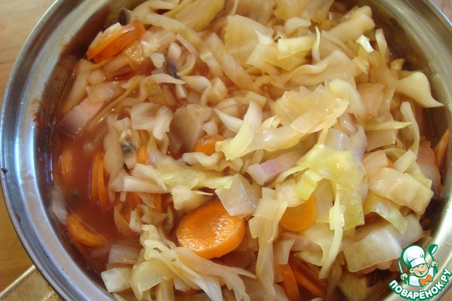 Рецепт «Капуста с грудинкой, запеченная с рисом»: