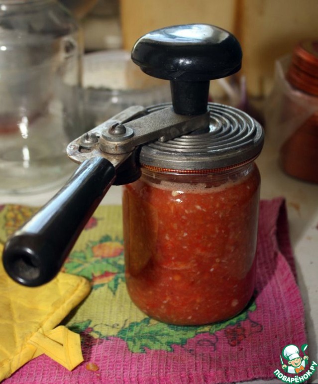 Банки с крышками тоже стерилизуем. Закатываем вот такой машинкой.