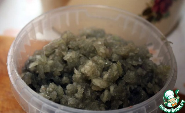 Пропускаем лук и чеснок через мясорубку. Как я уже говорил - очень печально. Аж слёзы из глаз.
