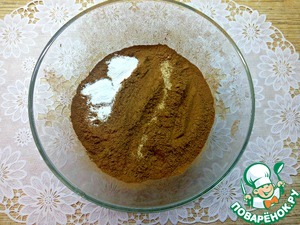 Добавляем какао и разрыхлитель. Перемешаем.