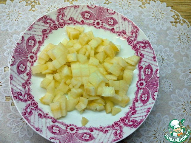 Грушу очистить и нарезать на кусочки.