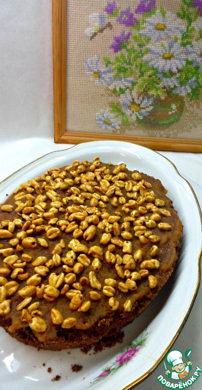 После аккуратно извлечь кекс из формы, смазать верх яблочным пюре и присыпать сверху. Я использовала воздушную пшеницу.