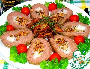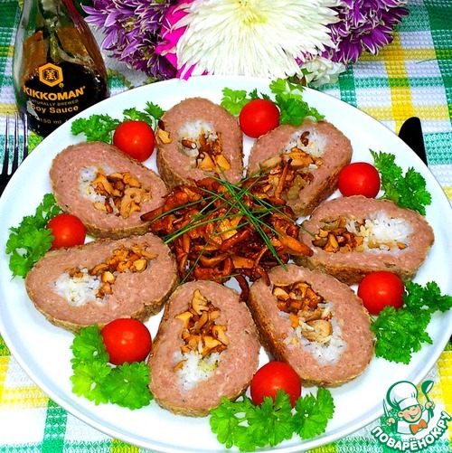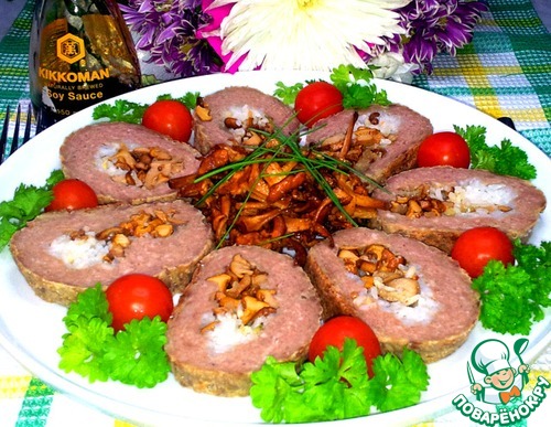 Мясной рулет с рисом и лисичками