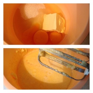 Мягкий маргарин, яйца и сахар взбить миксером до однородного состояния. Добавить сыворотку и хорошо перемешать, добавить муку и разрыхлитель. Взбить еще раз.