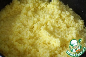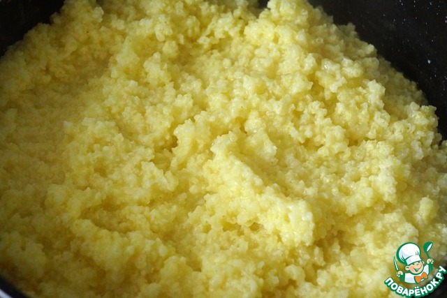 • Начнем с приготовления густой, почти разваристой каши из пшена. Для этого пшено как следует промыть теплой водой. Засыпать в кипящую воду из расчета 1:3, посолить и варить до готовности минут 20.