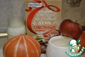 Наполняем тыкву хлопьями, яблоком и заливаем горячим молоком. Отправляем тыквы в разогретую духовку на 20минут. Вообще, результат завсит от самих тыкв- бывают какие-то тыквы, которые теряют форму при запекании.