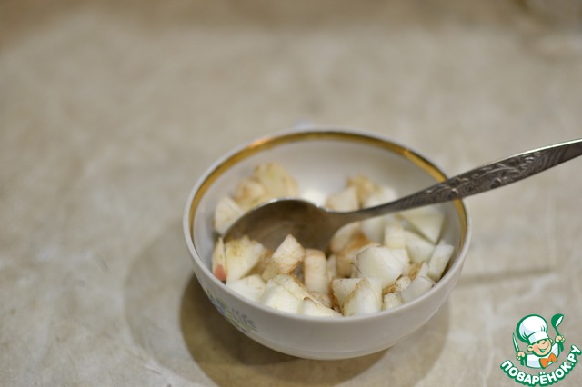 Утром ставим кипятится молоко, включаем духовку на 170-180 град. Сахар и соль я кладу в горячее молоко. Пока все разогревается, чистим яблоко, смешиваем его с корицей