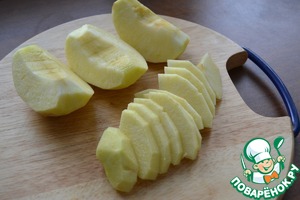 Яблоко почистим. Удалим сердцевину и нарежем на 4 части.