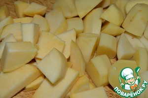 • В кастрюлю с бульоном положить тушоные овощи и довести до кипения. Затем положить картошку и репу, довести до кипения и варить 15 минут.