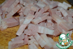 • Копченую грудинку или рульку нарезать небольшими кусочками или полосками.