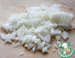 • На сковороде растопить сливочное масло и обжарить лук в течение нескольких минут до прозрачности.