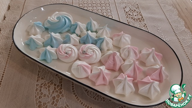 3. Сушить безе 1,5 часа, затем вынуть, снять с пергамента, остудить и хранить в закрытом контейнере. Из этого количества у меня получился противень безе.