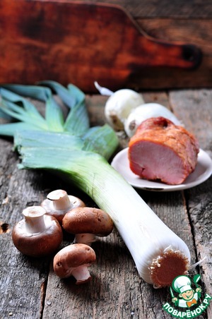 Ингредиенты для «Тосты с грибами, луком-пореем и ветчиной»: