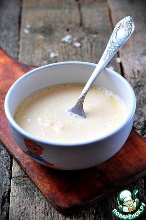 Взбить сливки с яйцами, посолить, поперчить.