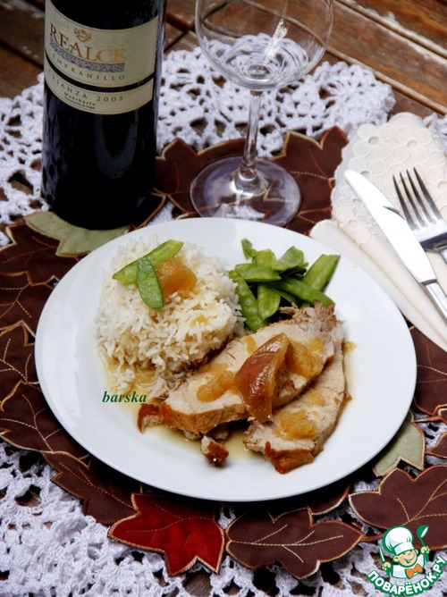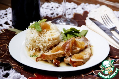 На гарнир к этой свинине предлагается приготовить рис, в духовке.