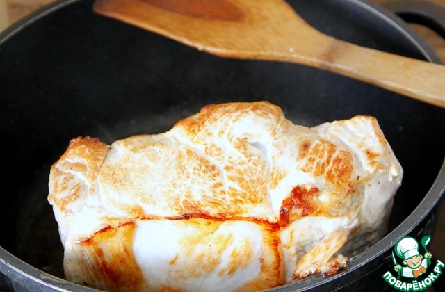 Мясо помыть и тщательно промокнуть бумажными полотенцами (не приправлять!). Обжарить мясо в горячем масле со всех сторон, до румяности (около 5-7 мин.).