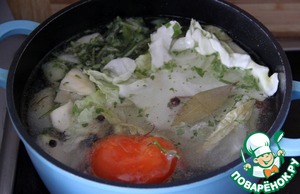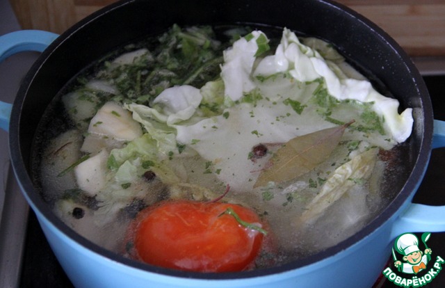 У меня не было готового куриного бульна, поэтому параллельно на плите я варила овощной... -