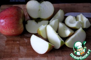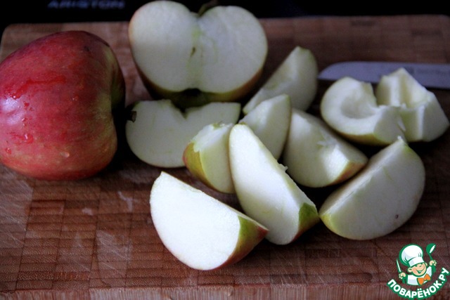 Чрез 25 мин. помыть яблоки, нарезать четвертинками, вынув серцевину