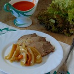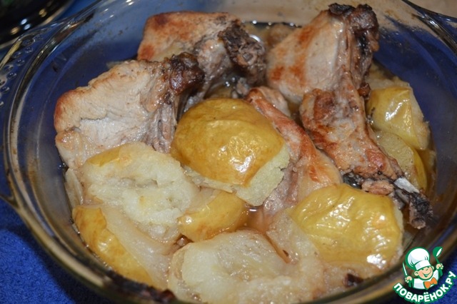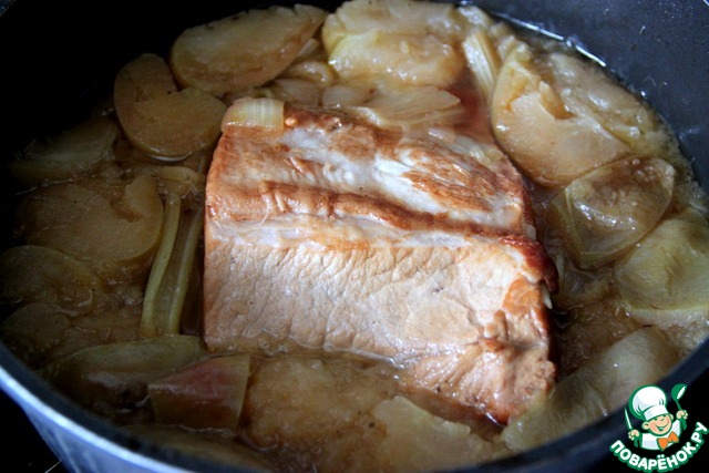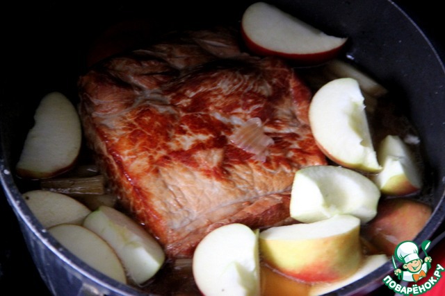 Рецепт свинины из Нормандии, французского севера, с легкой фруктовой ноткой яблок. Нормандия - это "яблоневый рай"! Основными нормандскими специалитетами являются сидр (молодое легкое яблочное, слегка шипучее вино), кальвадос (яблочный бренди), сыр камембер и много еще чего... Нормандия - с многочисленными и разнообразными сортами яблок - применяет их всегда и везде, в разных видах, очень изысканно, по-французски...