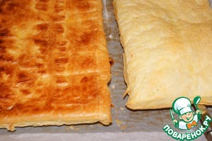 Тесто разделить на 4 части. Каждую раскатать размером 15х20 см и толщиной 5 мм. Поместить на противень, застеленный пекарской бумагой. Проколоть вилкой по всей площади и выпекать в прогретой до 200"С духовке приблизительно 8-10 минут. Верх теста не должен быть сильно запечен. Перевернуть тесто слегка запеченной стороной вниз, слегка прижать его сверху и выпекать еще 3-4 минуты. Ориентируйтесь на вашу духовку!