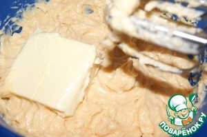 Остывший крем поместить в просторную емкость и взбить миксером. Добавить очень мягкое масло, взбить.