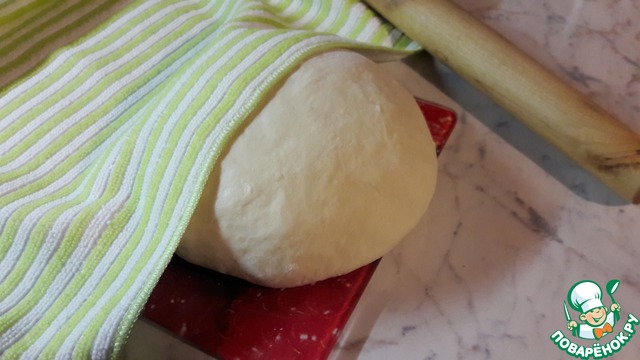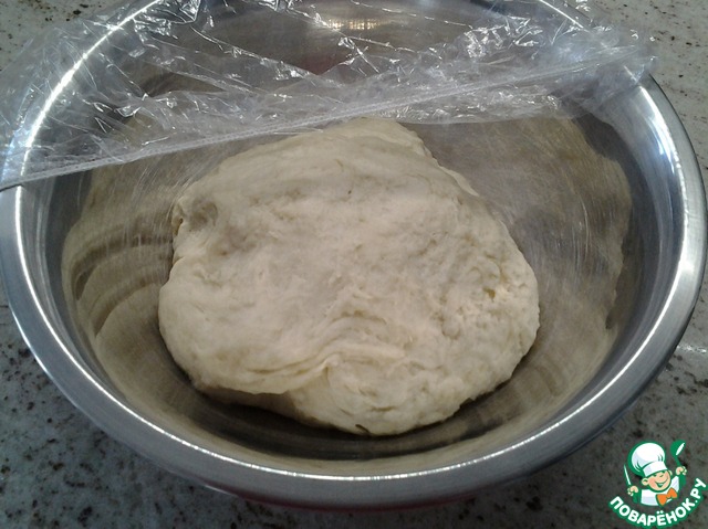 Тесто накрыть пленкой и оставить отдохнуть на 15-20 минут.