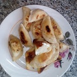 Если у вас кончилась начинка, а тесто вдруг осталось, то раскатайте лепешку в 1 см толщиной по диаметру сковороды и обжарьте с двух сторон лепешку на сухой сковороде. Очень вкусно к супу или сделать бутерброд на такой лепешке, а также подать салат на лепешке вместо тарелки. -