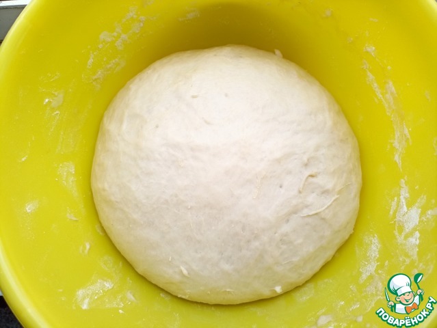 Вводим порциями муку. Вымешиваем руками тесто. Пропорции рассчитаны идеально. Тесто не липнет к рукам, но и не забито мукой. Главное: не надо долго месить тесто, получится резиновым.