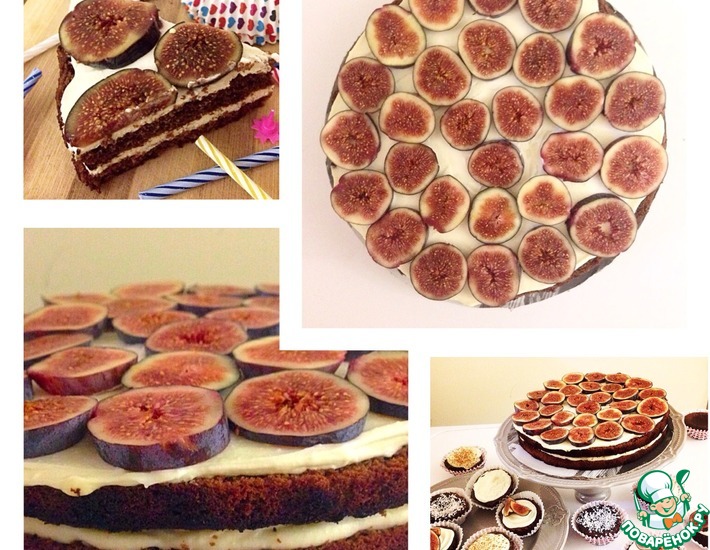Украшать инжиром либо любыми другими фруктами\сухофруктами\орехами\ягодами за 15 минут до выхода торта на праздничный стол (чтобы не использовать желе)