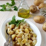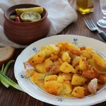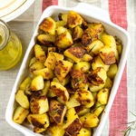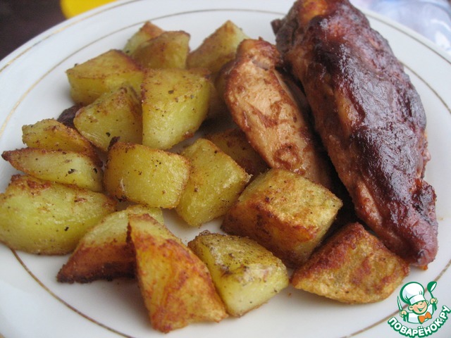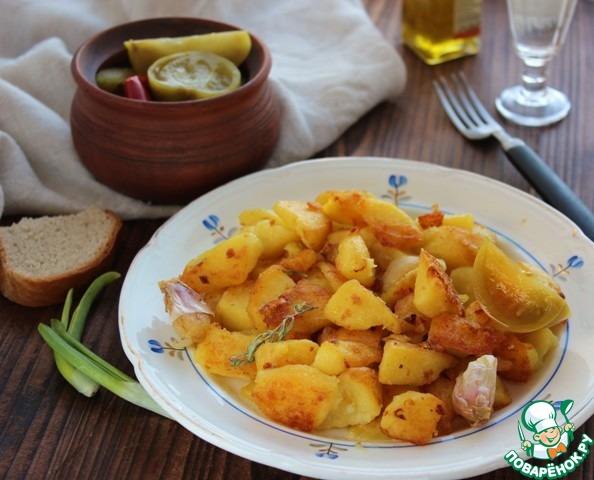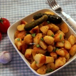 Этот обманный рецепт я подсмотрела у Джейми Оливера, в одной из его передач. Картофель получается с печеной корочкой снаружи и очень нежный внутри, с прекрасным ароматом. Однако, перед тем как выложить рецепт, решила пересмотреть как делал блюдо сам его создатель, и очень удивилась, оказывается в моих руках рецепт слегка мутировал, потеряв некоторые свои ингредиенты и приобретя несколько другие уже от меня.